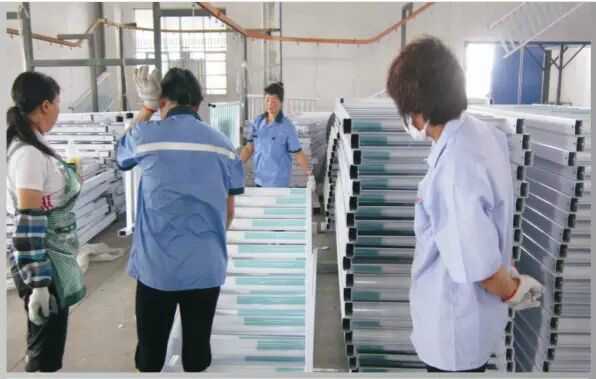 工人在給護欄打磨,確保護欄表面光滑、平整